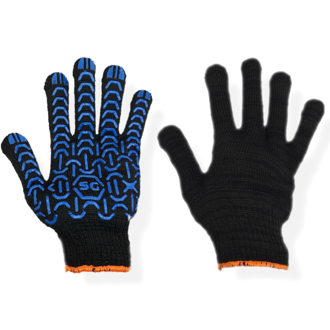 Трикотажні безшовні рукавички з підвищеною міцністю з нанесенням ПВХ малюнка або крапки. У край манжета вкладена гумка, а також манжет прошитий на оверлок. Зносостійкі. Щільні. Рекомендовані до застосування при вантажно-розвантажувальних роботах, у сільському господарстві, будівництві, комунальній сфері, легкій промисловості та ін.